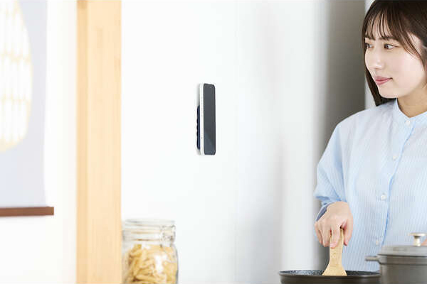 キッチンの壁に貼って、レシピ動画を見ながら料理を楽しめます。