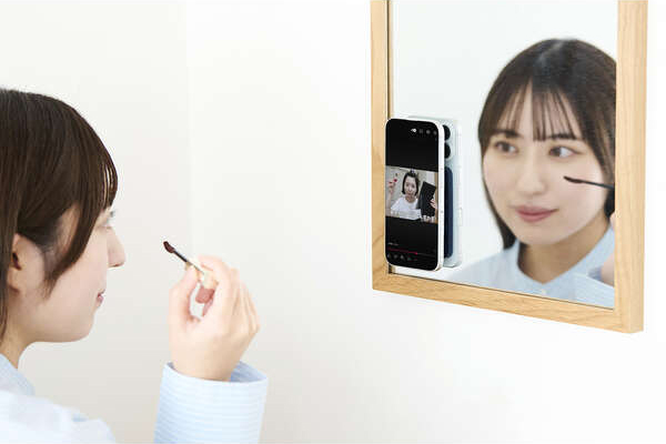 鏡に貼り付ければ、メイク中の画面チェックもスムーズに行えます。