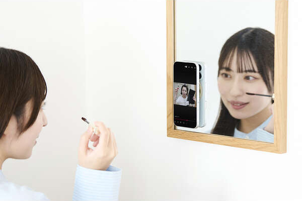 鏡に貼り付ければ、メイク中の画面チェックもスムーズに行えます。
