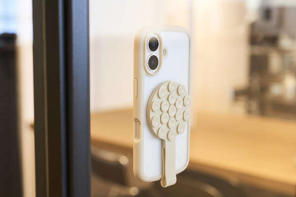 壁や鏡、窓ガラスなどの平らな面にシリコン吸盤で簡単に吸着可能。スマートフォンを自由な向きで固定できます。