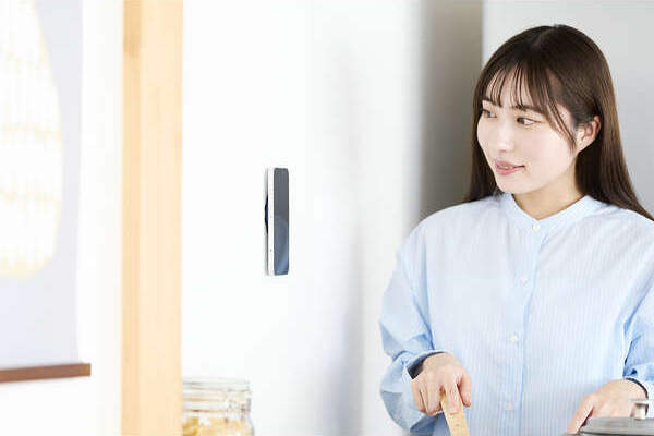 キッチンの壁に貼って、レシピ動画を見ながら料理を楽しめます。
