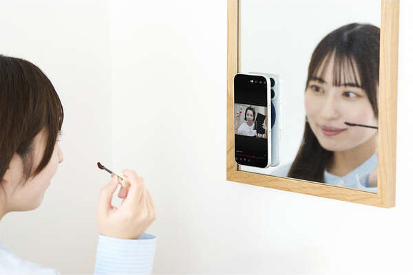 鏡に貼り付ければ、メイク中の画面チェックもスムーズに行えます。