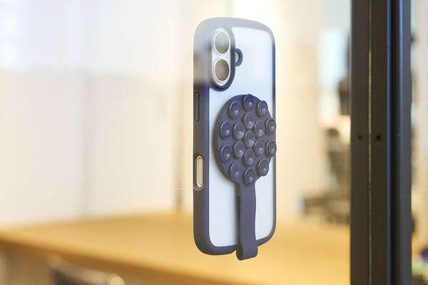 壁や鏡、窓ガラスなどの平らな面にシリコン吸盤で簡単に吸着可能。スマートフォンを自由な向きで固定できます。