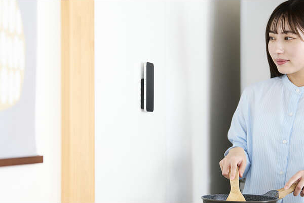 キッチンの壁に貼って、レシピ動画を見ながら料理を楽しめます。