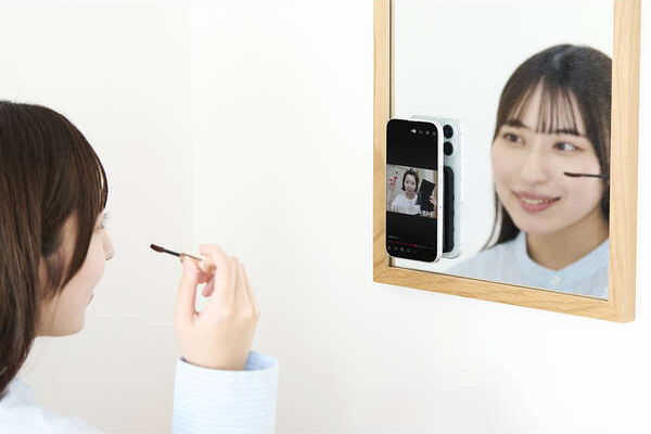 鏡に貼り付ければ、メイク中の画面チェックもスムーズに行えます。