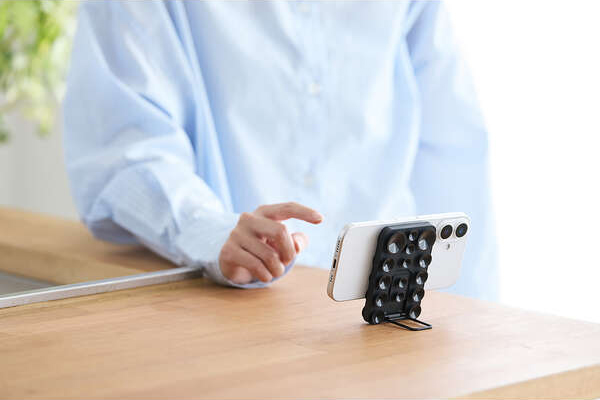日常の“ながらスマホ”をより便利に!壁や鏡、窓ガラスなどの平らな面に、タコの吸盤のようにピタッと吸着する“TakoPita”スマホパッドです。MagSafe非対応のスマートフォンやケースにも対応し、両手を使わずに画面操作や動画視聴が可能。縦横どちらの向きにも使えるスタンド付きです。