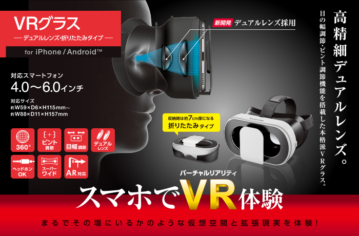 スマートフォンで充実したVR体験ができるデュアルレンズタイプのVRグラス