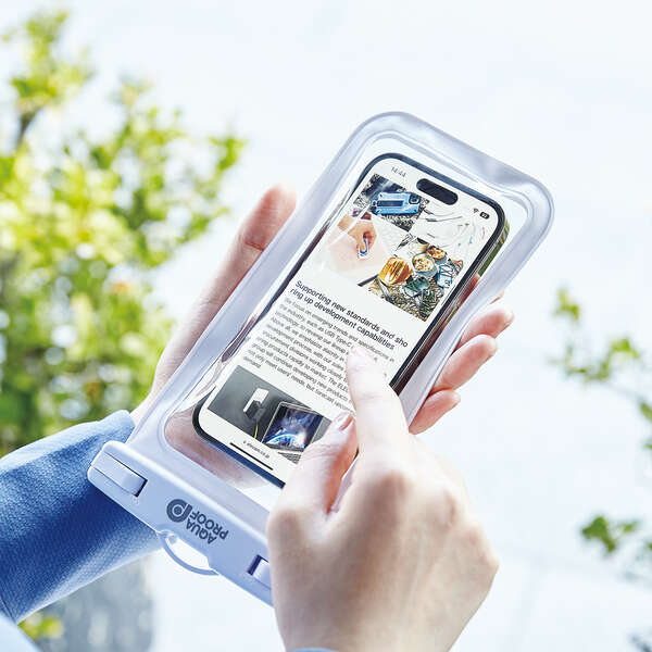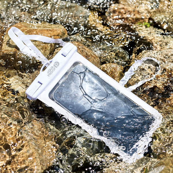 JIS保護等級IP58相当の防塵・防水性能を実現する、水深10mで30分まで使用可能なスマートフォン用防水ケース“AQUA PROOF”です。