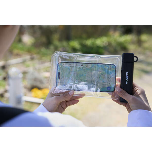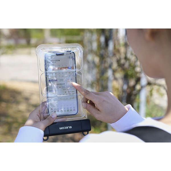 JIS保護等級IP68(JIS C 60529:2026)に準拠した防塵・防水性能を備え、しっかり閉じて、必要なときに素早く開けられるワンタッチ開閉クリップを採用。特殊構造で水中タッチ操作が可能なスマートフォン用防水ケースです。