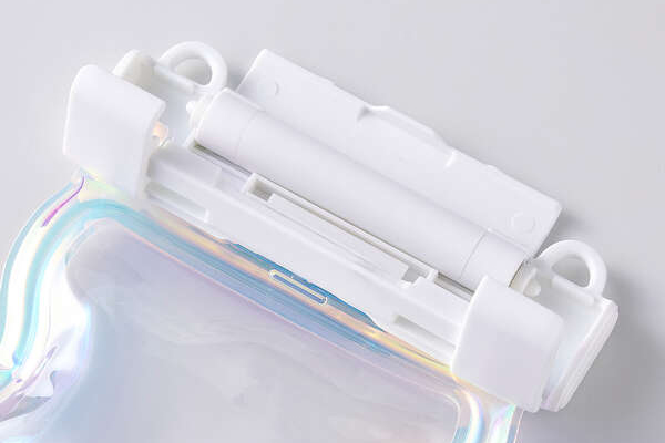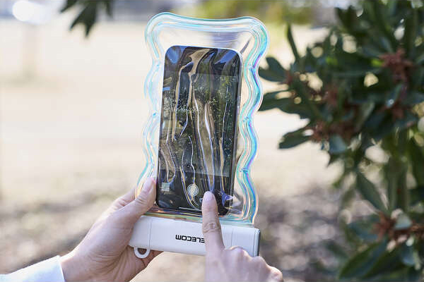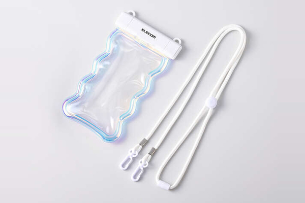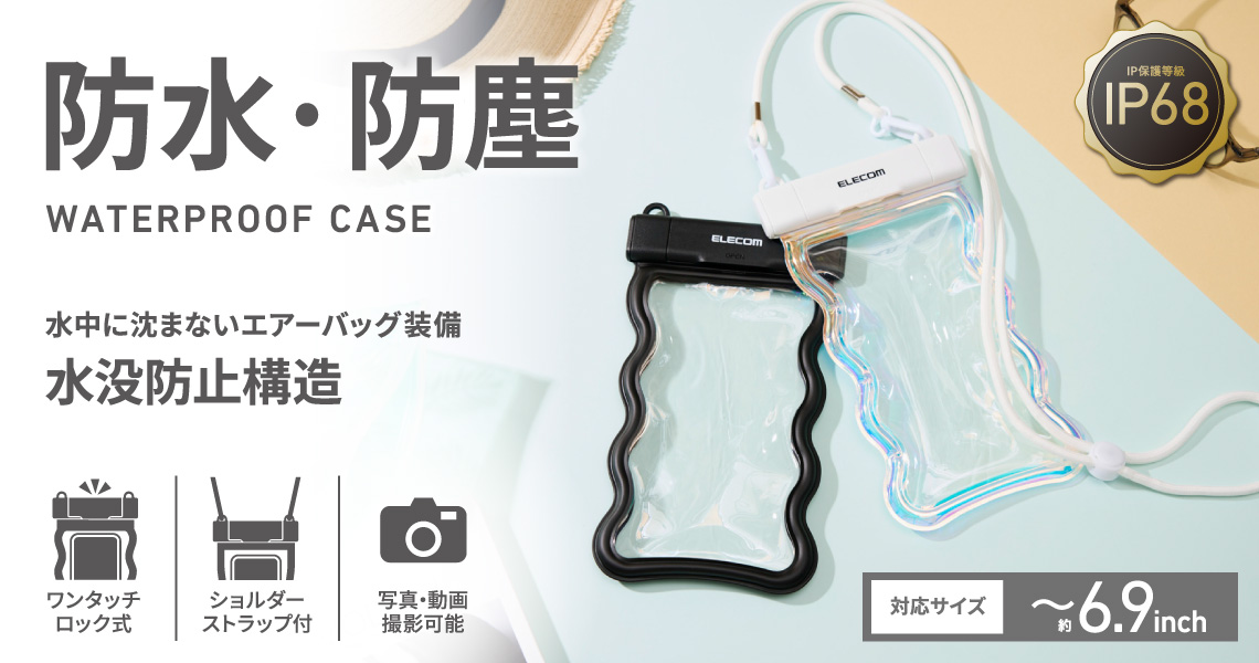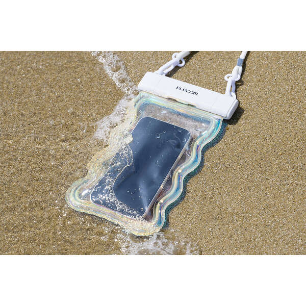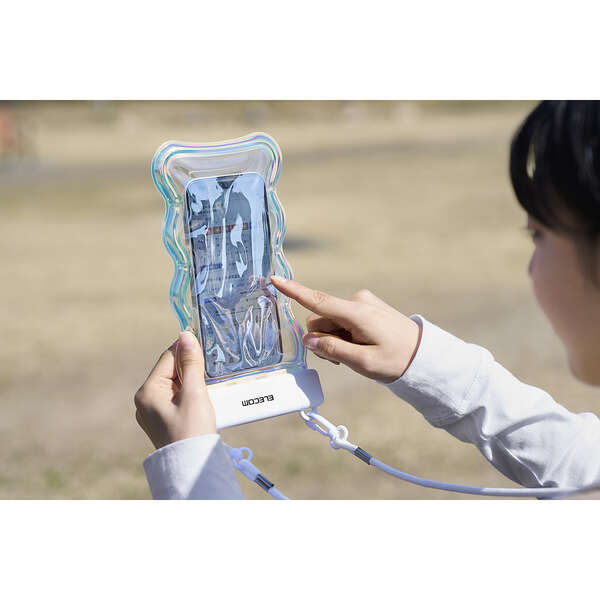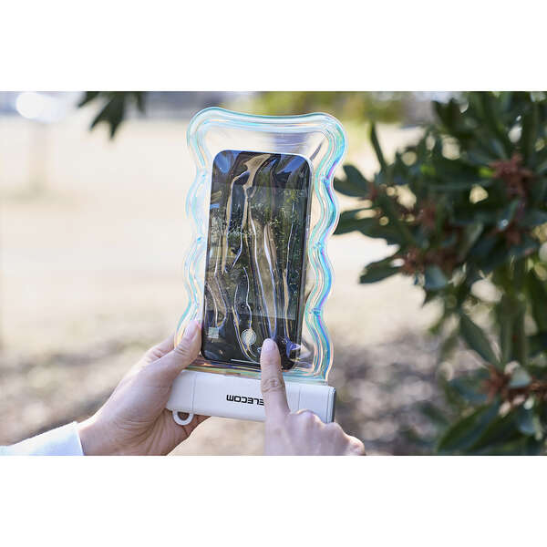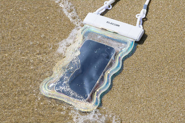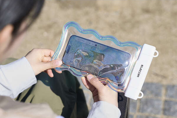 JIS保護等級IP68(JIS C 60529:2026)に準拠した防塵・防水性能を備え、しっかり閉じて、必要なときに素早く開けられるワンタッチ開閉クリップを採用。波打つ柔らかなラインが映えるスマートフォン用防水ケースです。