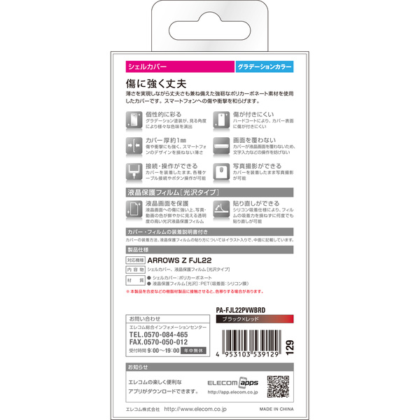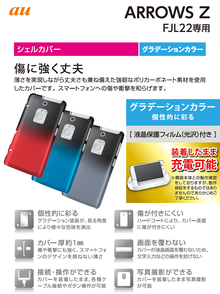 au ARROWS Z(FJL22)をお好きなカラーにコーディネート!本体をキズや汚れから守る、ポリカーボネート製のスリムなシェルカバーと保護フィルム。
