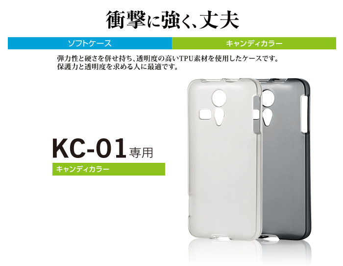 KC-01をキズや汚れから守る、強じんでしなやかなTPU(熱可塑性ポリウレタン)素材を使用したソフトケースです。