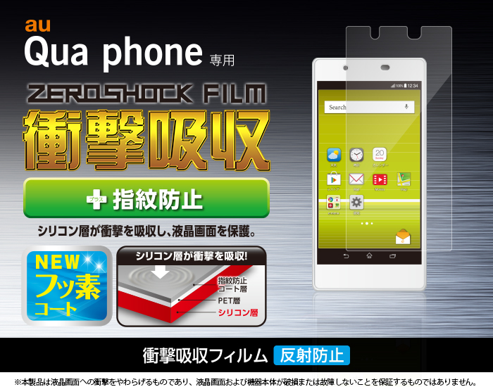 - au Qua phoneの液晶画面をキズや汚れから守る、指紋防止タイプの液晶保護フィルムです。