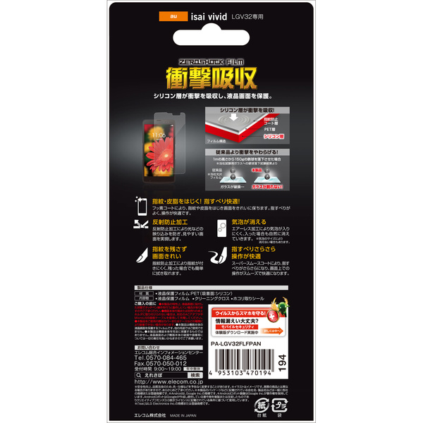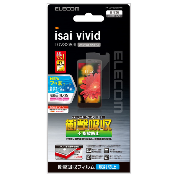 - 特厚シリコン層が衝撃を吸収するau isai vivid(LGV32)用の衝撃吸収フィルムです。