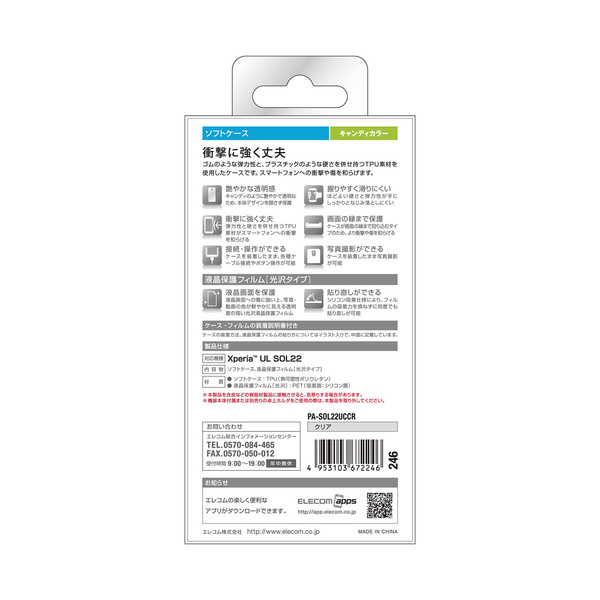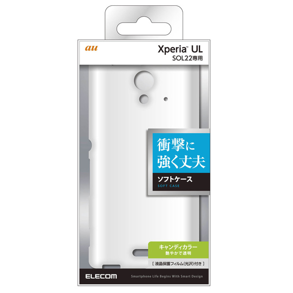 au Xperia(TM) UL(SOL22)をキズや汚れからしっかり守る!強じんな耐久性としなやかな弾力性を合わせ持ったTPU(熱可塑性ポリウレタン)素材を使用したソフトケースと液晶保護フィルムのセット。