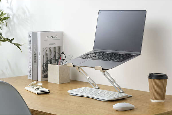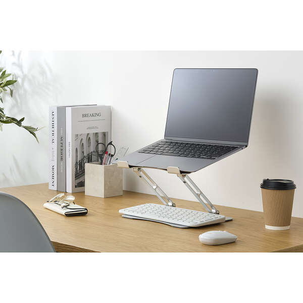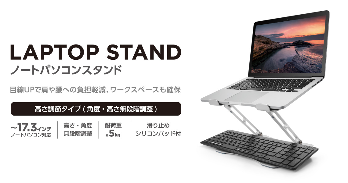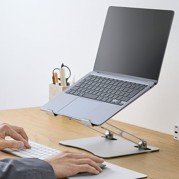 最適な高さ・角度に無段階調整できる、折り畳み式ノートパソコンスタンドです。