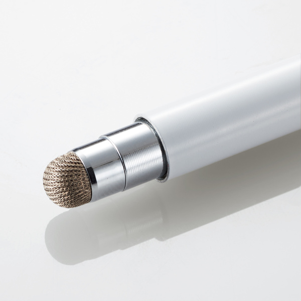 ペン先を守り、スムーズに着脱できるマグネットキャップ付き。 導電繊維製のペン先で、さらさらと滑り心地がよく、なめらかな操作を実現するキャップ付き導電繊維タッチペン。