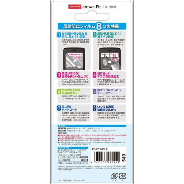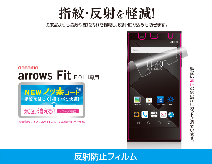- docomo arrows Fit(F-01H)の液晶画面をキズや汚れから守る、反射防止タイプの液晶保護フィルムです。