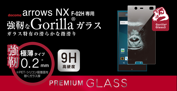 - なめらかな指滑りを実現するリアルガラスを採用。Gorilla(R)ガラスを採用した極薄タイプのdocomo arrows NX(F-02H)用液晶保護ガラス。