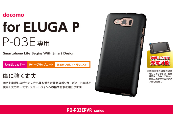 docomo ELUGA P(P-03E)をお好きなカラーにコーディネート!本体をキズや汚れから守る、ポリカーボネート製のスリムなシェルカバーと保護フィルム。