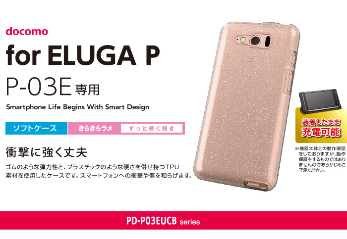 docomo ELUGA P(P-03E)をキズや汚れからしっかり守る!強じんな耐久性としなやかな弾力性を合わせ持ったTPU(熱可塑性ポリウレタン)素材を使用したソフトケースと液晶保護フィルムのセット。