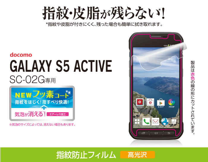 - docomo GALAXY S5 ACTIVE(SC-02G)の液晶画面をキズや汚れから守る、指紋防止タイプの液晶保護フィルムです。