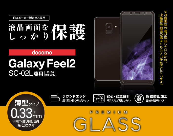 • なめらかな指滑りを実現するリアルガラスを採用。Galaxy Feel2(SC-02L)の液晶画面をキズや汚れから守る、スタンダードタイプの液晶保護ガラスです。