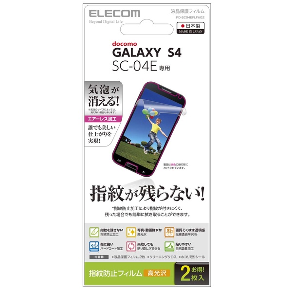 気泡がキレイに抜けるエアレスタイプ。docomo GALAXY S4(SC-04E)の液晶画面をキズや汚れから守る、エアレスタイプの液晶保護フィルム。
