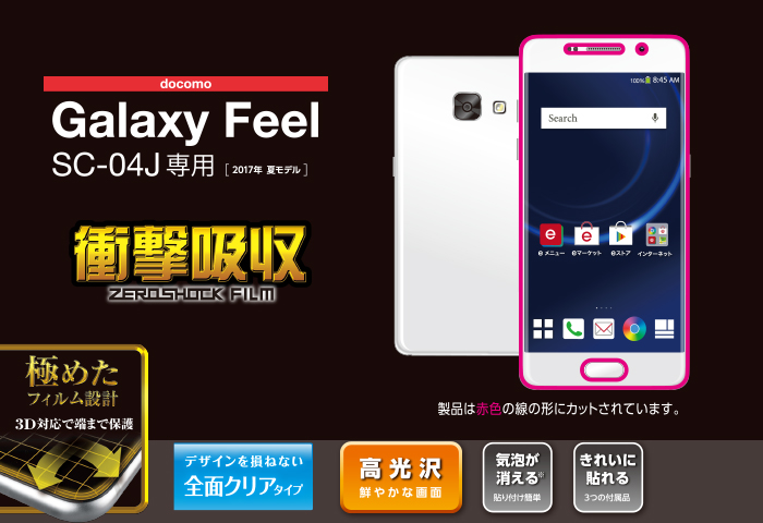 - 柔軟性のあるフィルムが衝撃を吸収するdocomo Galaxy Feel(SC-04J)用衝撃吸収フィルムです。