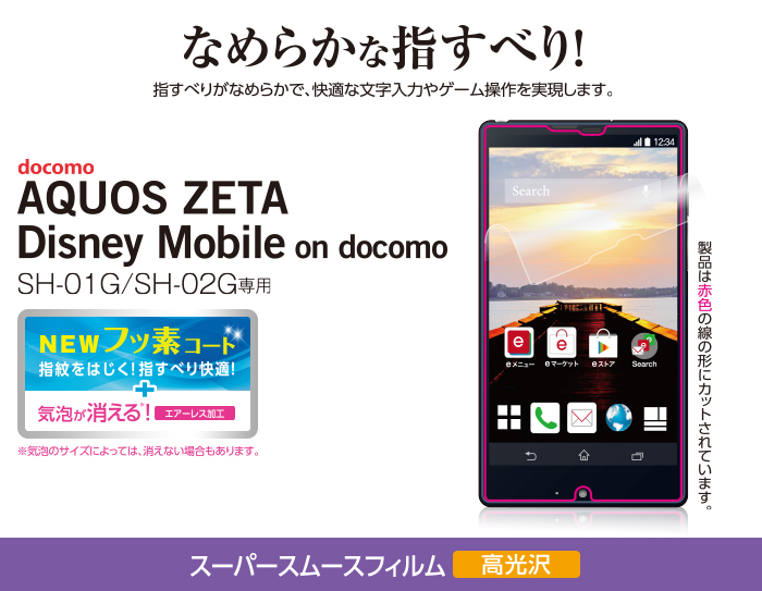 - docomo SH-01G/SH-02Gの液晶画面をキズや汚れから守る、スーパースムースタイプの液晶保護フィルムです。