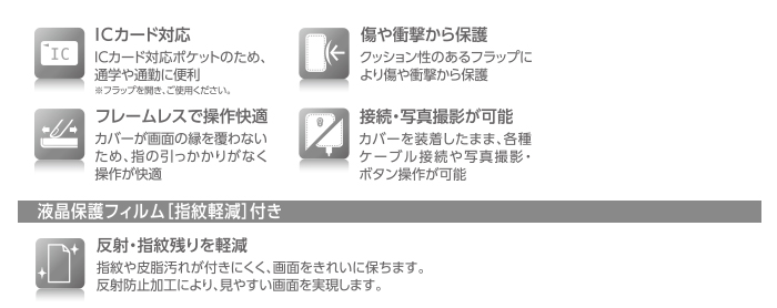 カードを出し入れすることなくそのままICカードを使用可能です。※フラップを開きご使用ください。