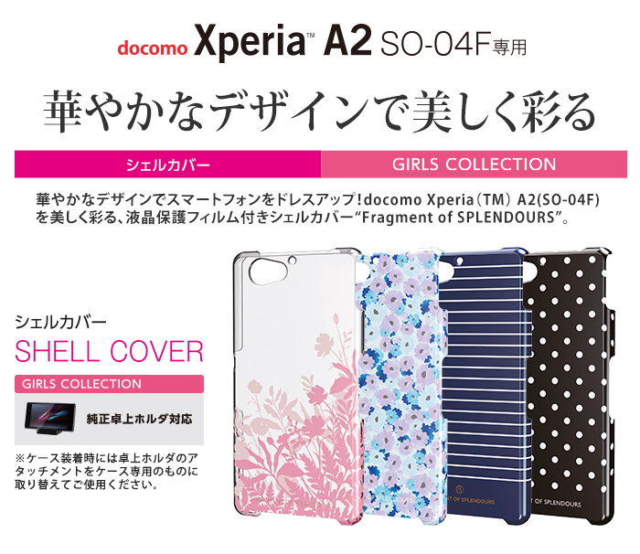 華やかなデザインでスマートフォンをドレスアップ!docomo Xperia(TM) A2(SO-04F)を美しく彩る、液晶保護フィルム付きシェルカバー“Fragment of SPLENDOURS”。