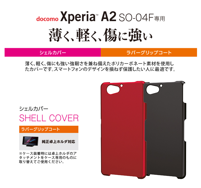 docomo Xperia(TM) A2(SO-04F)/Xperia(TM) J1 Compactをお好きなカラーにコーディネート!本体をキズや汚れから守る、ポリカーボネート製のスリムなシェルカバーと保護フィルム。