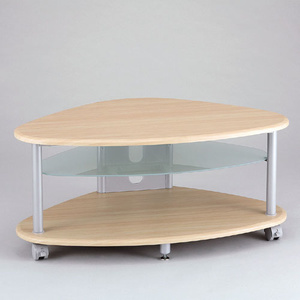 コーナー設置を考慮したデザインと和室やフローリングに合う木目柄TV台。中棚は収納するAV機器等のサイズに合わせて、3段可変で取付け可能で機能面にも配慮しました。