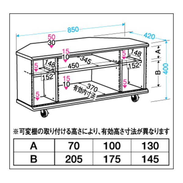 収納性・移動性を考慮した、キャスター付でコーナーにも置ける、引戸付TVスタンド。