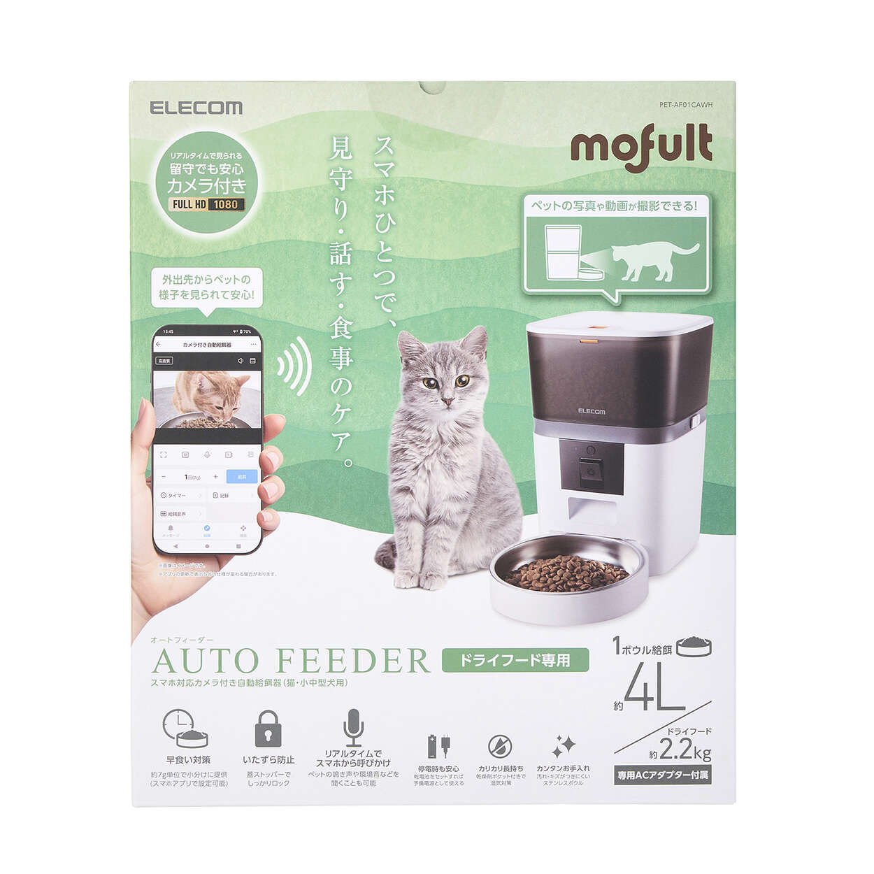 飼い主の留守中も見守れて安心!スマホアプリからリアルタイムで、愛犬・愛猫の様子を確認できるカメラ付き自動給餌器です。ごはんの量や回数を細かく設定でき、外出中でも規則正しい食生活をサポートします。約4Lの大容量タンクで、不在が続くときもごはんをたっぷりストックできます。
