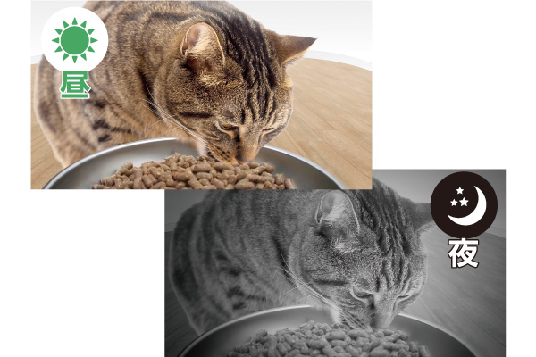昼間はもちろん、夜や暗い場所でもナイトビジョンモードでペットの様子がしっかり見られるので、24時間いつでも大切な家族を見守ることができます。