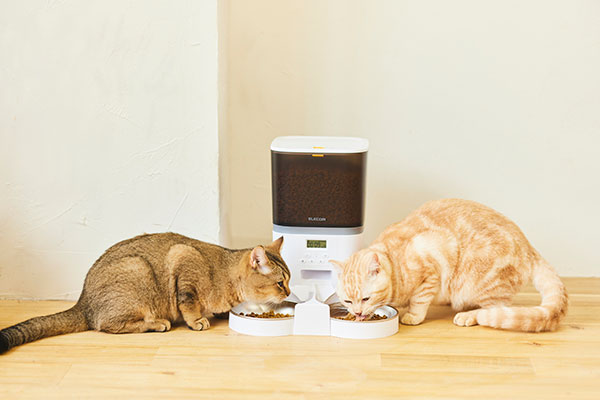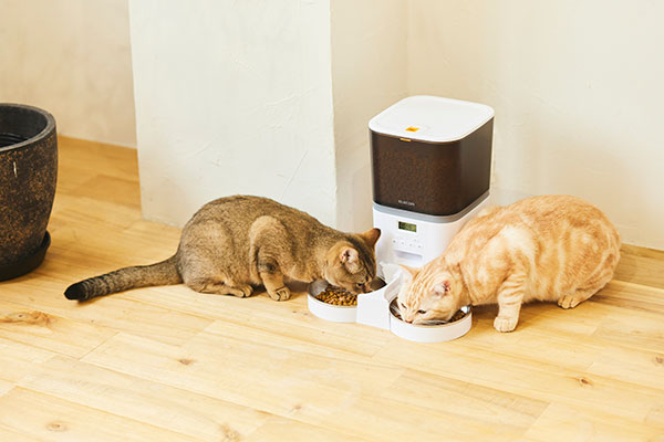 旅行や帰りが遅い日など不在中でも、いつものごはんで健康維持をサポート。給餌の時間・量・回数を細かく設定できる自動給餌器です。