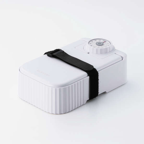 電池を入れたまま一時的に使わないときも、タイマーが動いて蓋が開かないようにしっかり固定できる蓋ロックベルト付き。また、長期間使わないときは電池を抜き、ダイヤルを回しておくことで蓋をロックしておけるので、安全に保管できます。