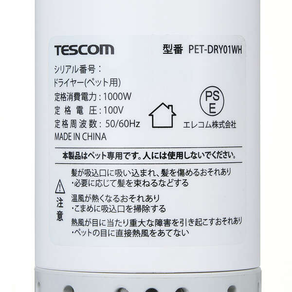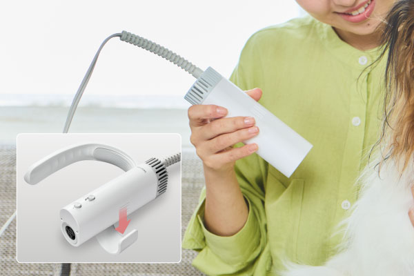 ※犬・猫専用ドライヤーです。人やその他の動物には使用しないでください。また、ペットの目や耳に直接熱風を当てないでください。やけどなどの重大な障害を引き起こすおそれがあります。