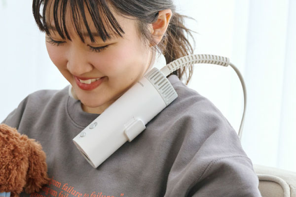 首や肩にかけられるフレキシブルホルダーで両手が自由に使え、ドライ時間がぐっと快適になるペット用ドライヤー「HUG AIR(ハグエアー)」です。シーンに合わせて選べる3WAYスタイルで、シャンプー後のドライをスムーズに仕上げられます。
