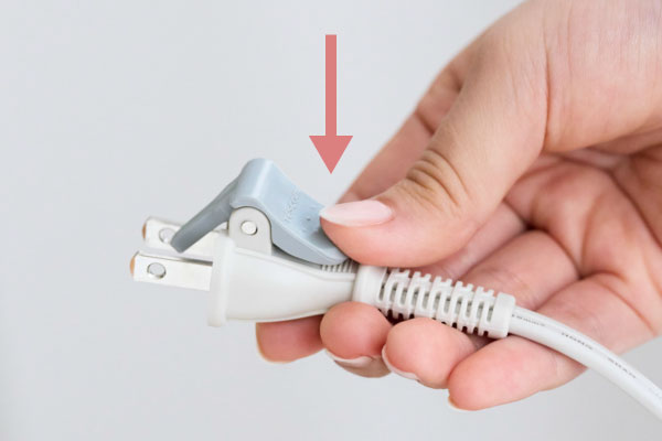 ラク抜きプラグで取り外し簡単。レバーを押すだけでコンセントから簡単に抜くことができます。