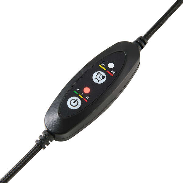 ヒーターシートに取り付けられたコントローラーで、2段階の温度調節やタイマー設定を簡単に操作できます。
