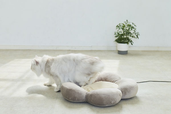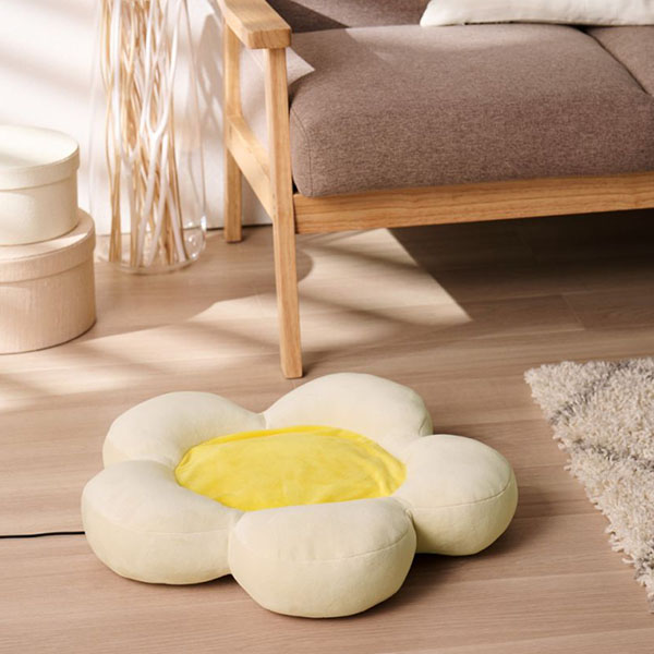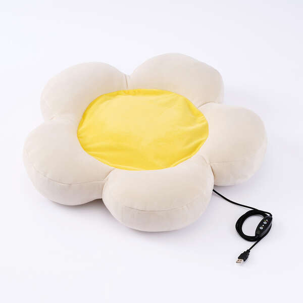 柔らかな肌触りとふっくらした花びらのデザインで愛犬や愛猫がリラックスできる、USB給電式のヒーティングクッションです。