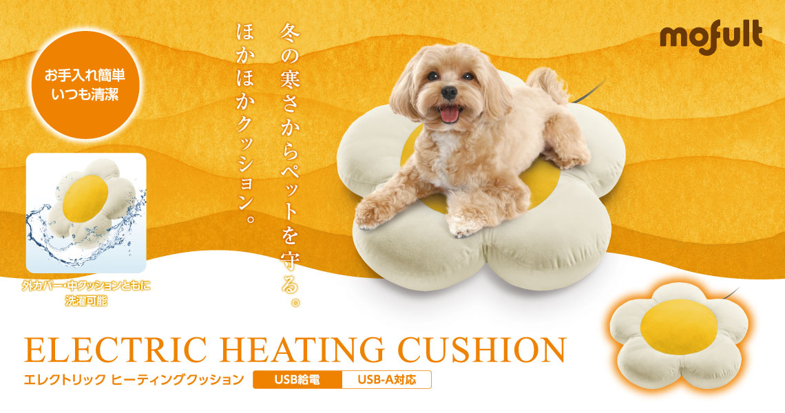 冬の暮らしを温かく快適に。柔らかな肌触りとふっくらした花びらのデザインで愛犬や愛猫がリラックスできる、USB給電式のヒーティングクッションです。モバイルバッテリー対応でコンセントがない場所でも使えます。外カバー・中クッションともに手洗いできるので、清潔を保ちながら繰り返し使えます。