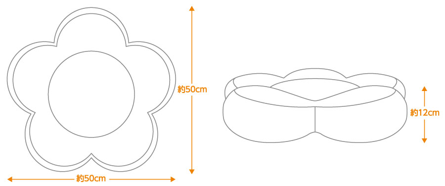 花びら部分をふっくらと盛り上げたデザインなので、頭や手足が置きやすく、ゆったりくつろげるリラックス形状です。