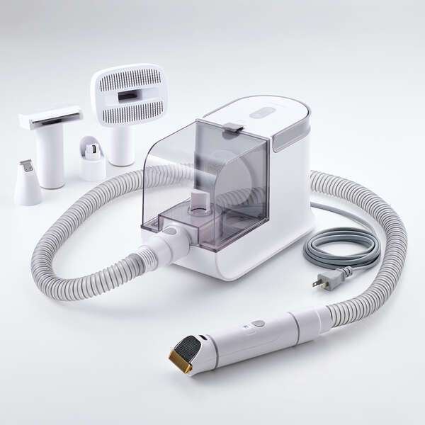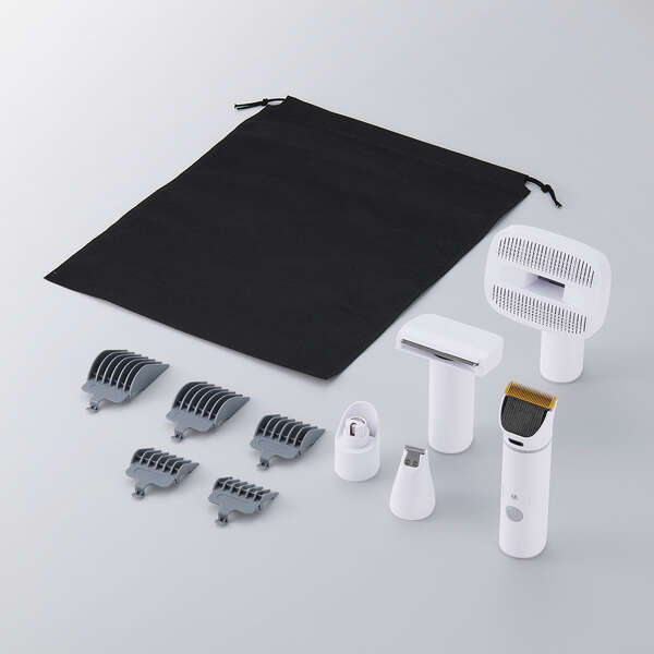おうちでカンタンお手入れ。伸びた毛をカットし、定期的なお手入れでワンちゃん・ネコちゃんの健康維持をサポートする、ペット用トリミング・グルーミングキットです。専用のバリカン本体に、バリカンヘッド(大)・バリカンヘッド(小)・爪とぎヘッド、2種類のグルーミングブラシが付属。バリカンヘッド(大)に装着できる6種類のアタッチメントでお好みの長さにカットできるので、ペットの体格などに合わせて細やかなケアができます。被毛をしっかりキャッチ・吸引するため毛が舞わず、抜け毛を気にせずおうちで手軽にトリミングやグルーミングができます。