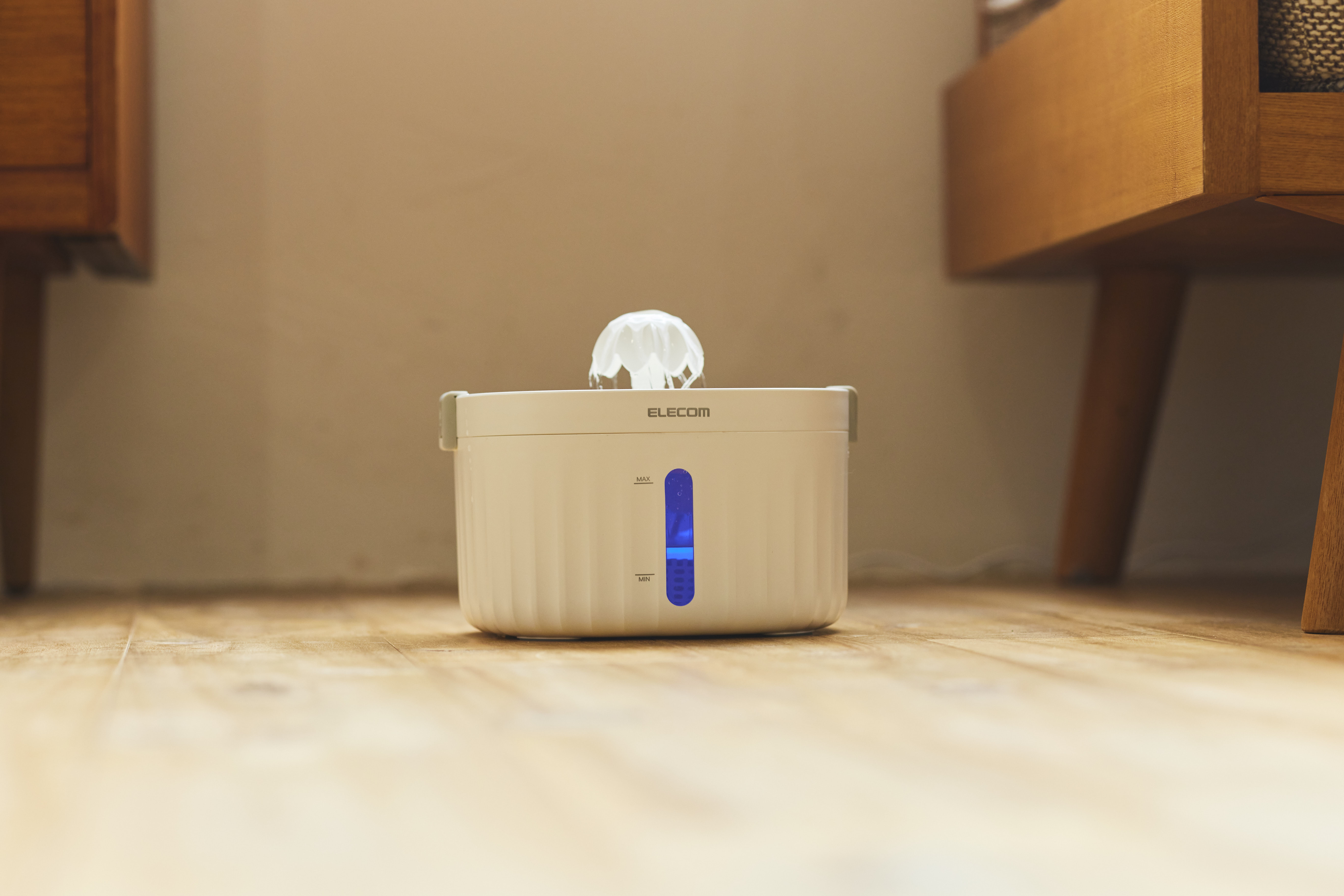 タンク内の残量が減り、限界水量ラインを下回ると、赤色ライトが点灯してお知らせ。補充のタイミングがすぐに分かります。