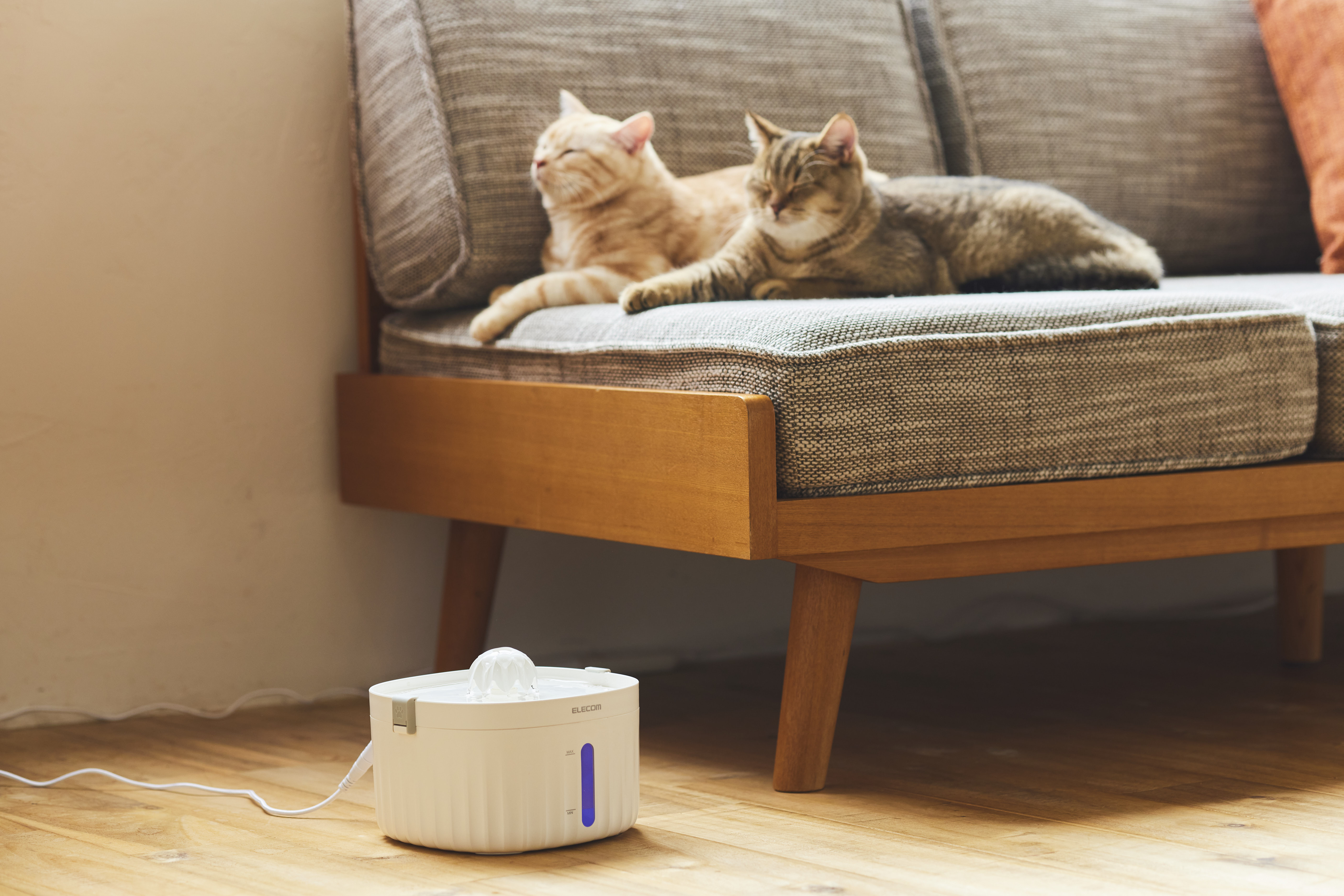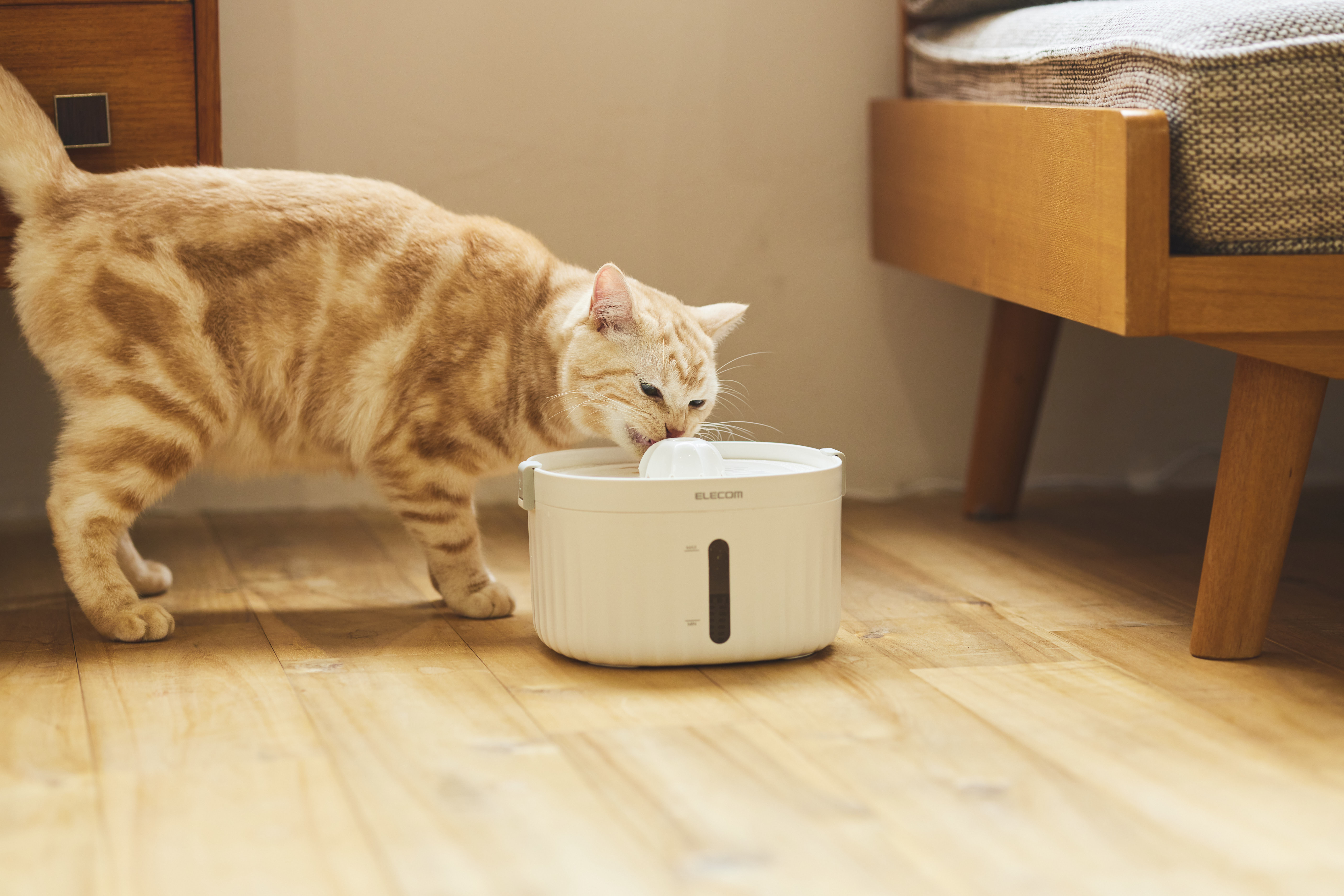 ポンプが水タンクに接触しない構造で振動音を抑え、近距離(※本体から30cmの距離で測定)でも16.6dB、2m以上離れた場所では8dB以下の超静音設計を実現。おやすみタイムも音を気にせず過ごせます。音に敏感なネコちゃん・ワンちゃんでも安心です。