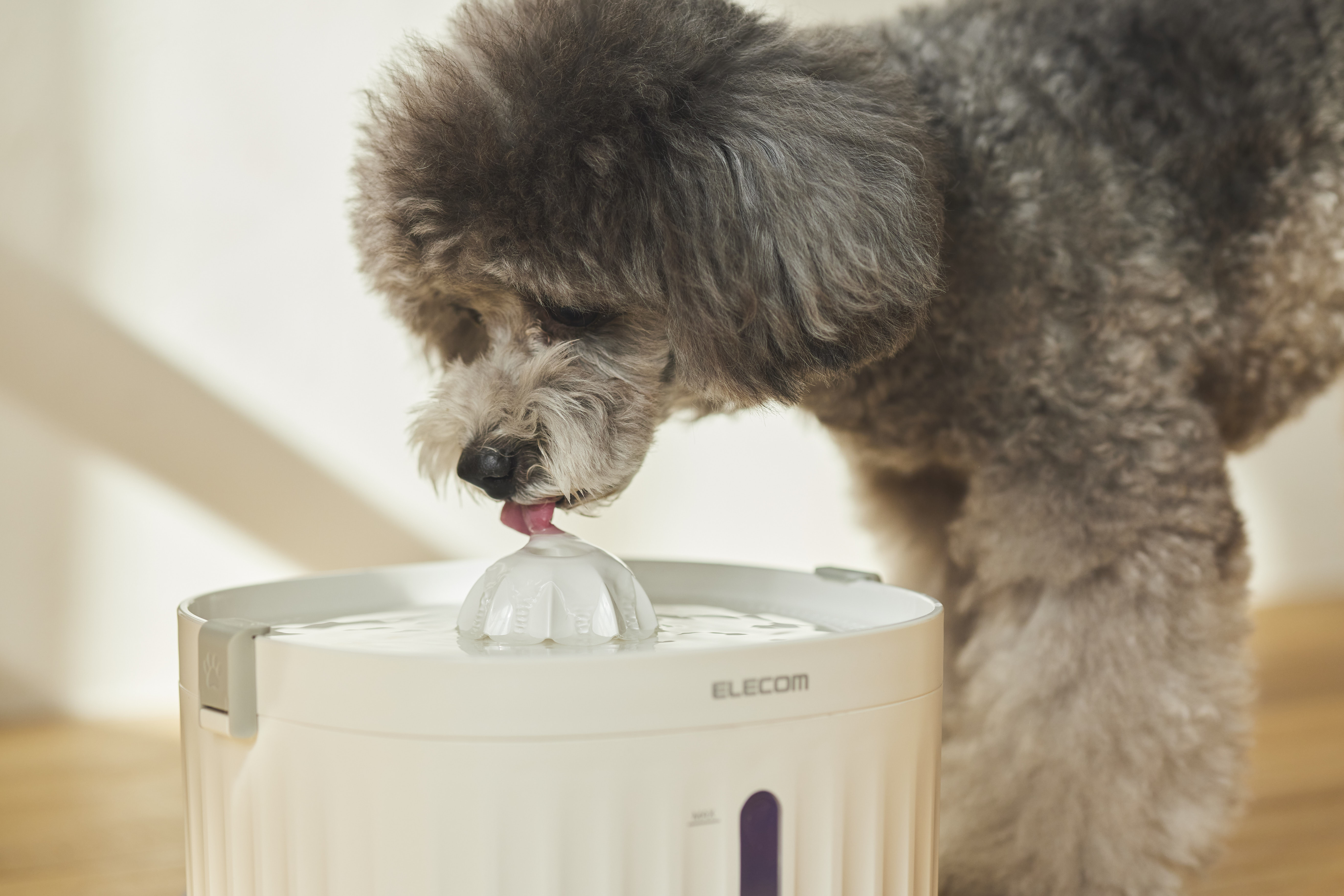トレイは汚れが溜まりにくい水平タイプ。ネコちゃん・ワンちゃんのひげが触れにくく、飲みやすいよう広くて浅い設計です。